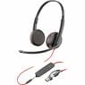 HP - POLY Poly Blackwire 3225 Wired On-ear, Over-the-head Stereo Headset - Black - Binaural - Supra-aural - 32 Ohm - 20 Hz to 20 kHz - 2.26 m (88.80") Cable - Omni-directional, Noise Cancelling Microphone - USB Type C, Mini-phone (3.5mm) Less
